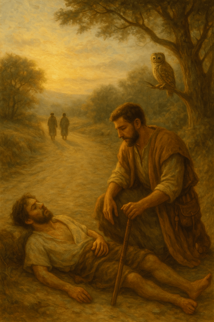 It was the foreigner, the one who didn’t belong there—the “filthy Samaritan dog”—who stopped.